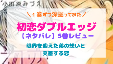 少女漫画 初恋ダブルエッジ5巻ネタバレ感想♡限界を迎えた弟の想いと、交差する恋 『初恋ダブルエッジ』5巻のネタバレ感想。修平の抑えきれない想いがついに限界を迎える切ない展開。謡・戸野田・修平、それぞれの恋が交差する見どころや印象的なシーンを詳しくレビューします。 2026.03.12 少女漫画巻ごとレビュー